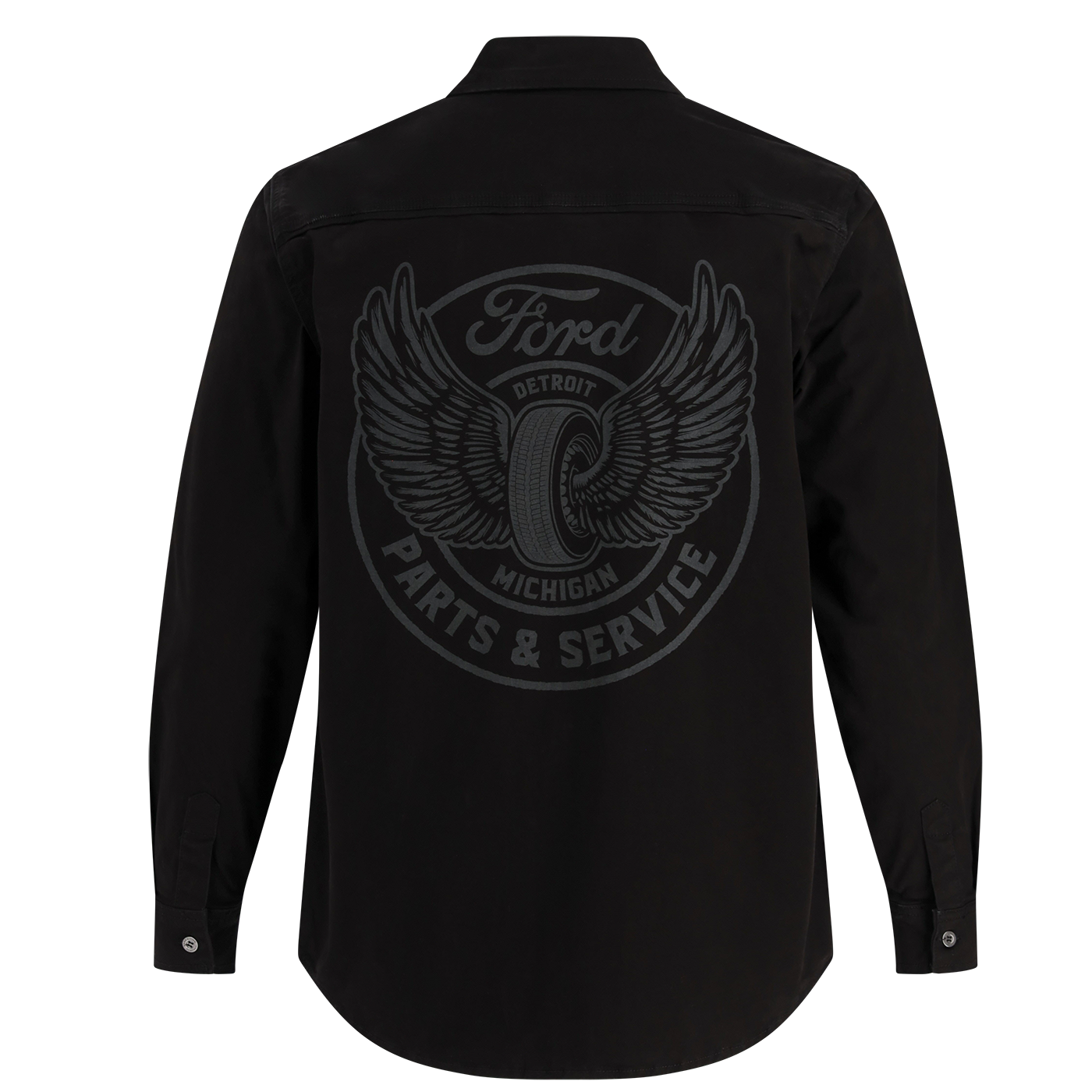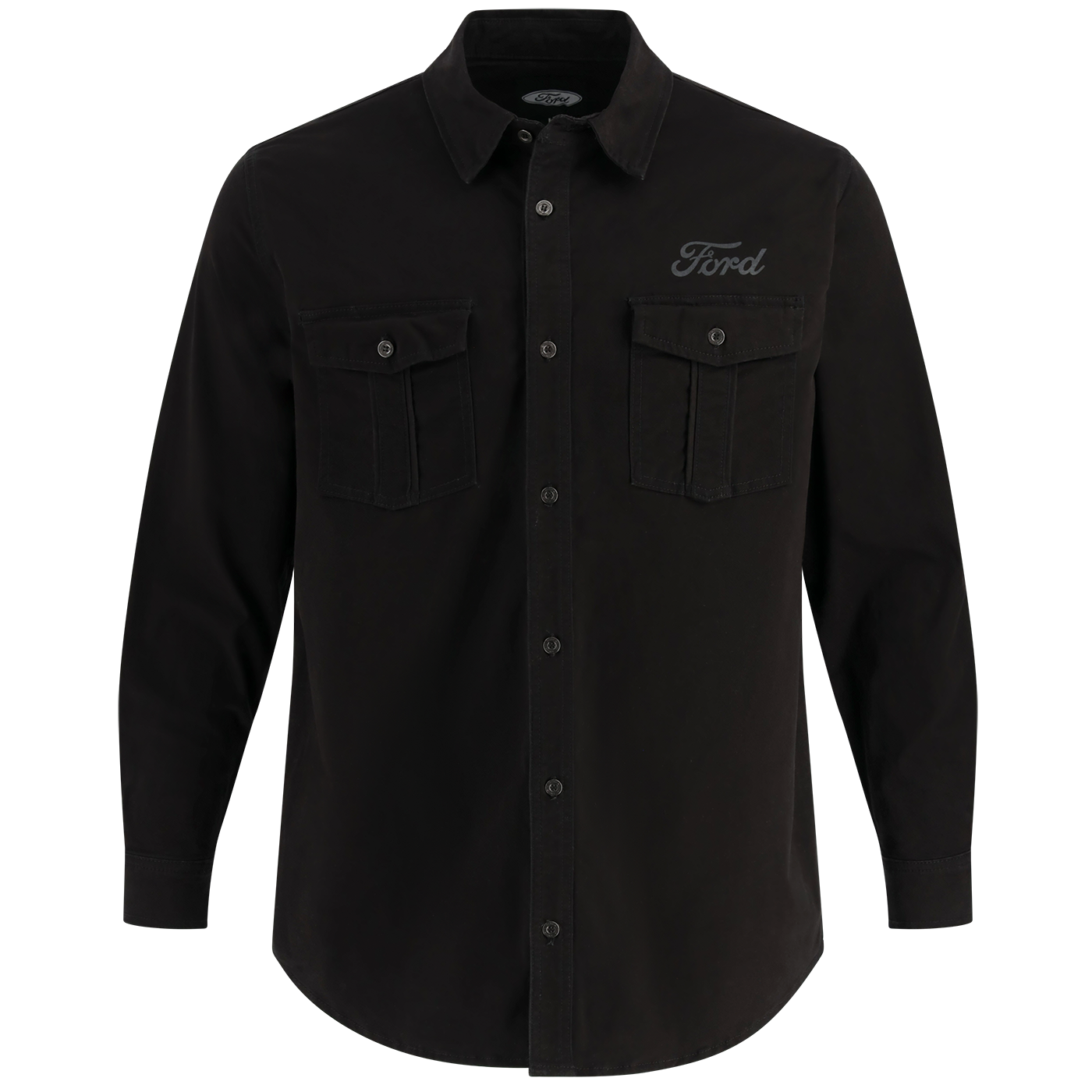 Button Up with the Ford™ Script Logo Men's Ls Black Mechanic Shirt The Ford Script Logo Men's Long Sleeve Mechanic...