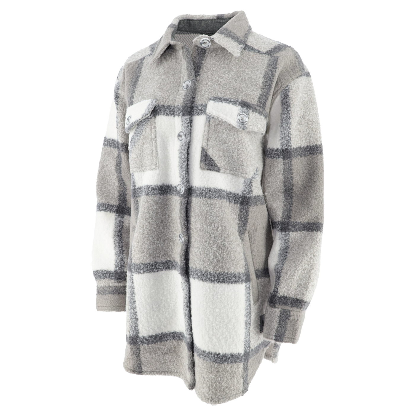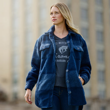 The Ford Bronco™ Women's Plaid Shirt Jacket Blends Comfort with its Cozy Knit and Plaid Design Featuring practical chest pockets...