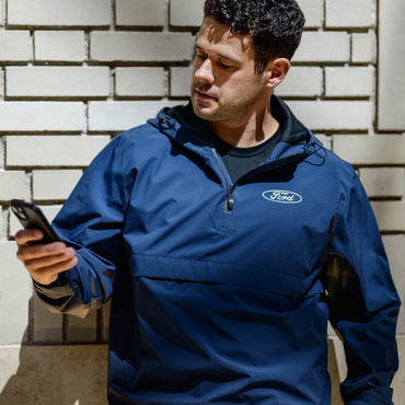 Ford Navy Blue Packable Quarter Zip Windbreaker Rain Jacket
