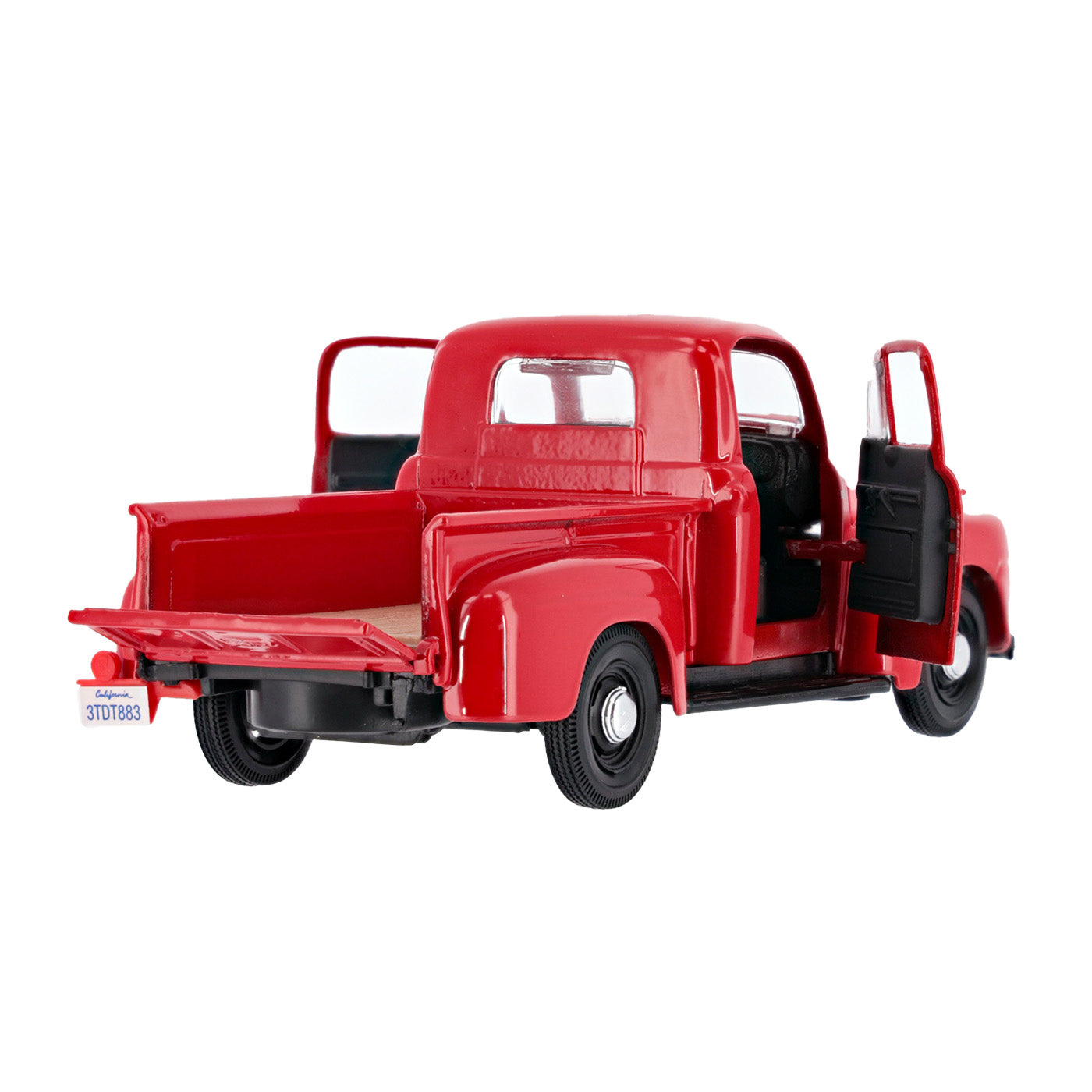 Maisto International inc introduces the 1:24 scale model of Ford's 1948 F-1 Pickup Truck. Made of diecast metal with some plastic parts. Real rubber tires, detailed interiors, exteriors. Has opening doors and a tailgate for articulation. no glue or paint is needed in the assembly.