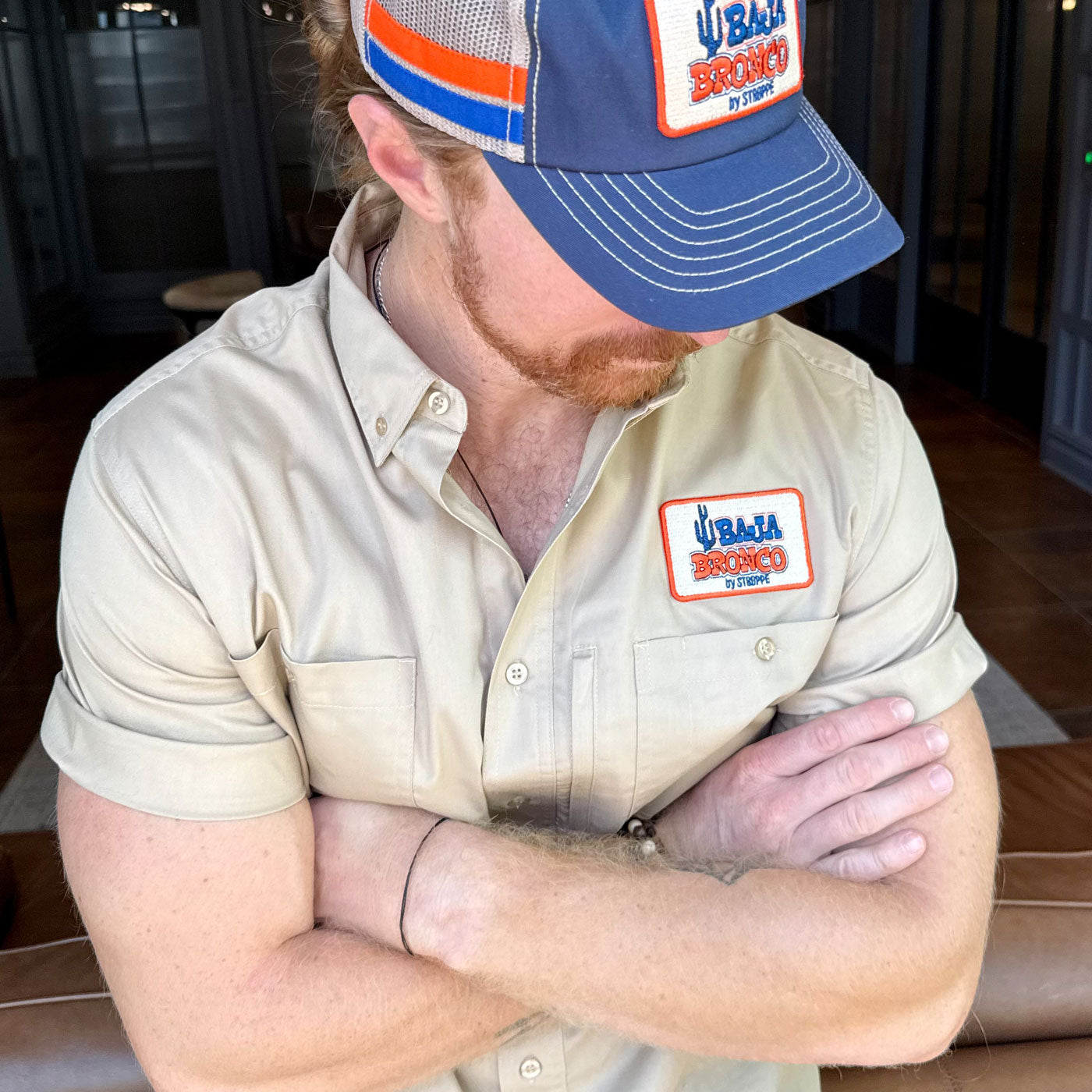 Ford Baja Bronco Stroppe Mens Button Pocket Khaki Mechanic Shirt