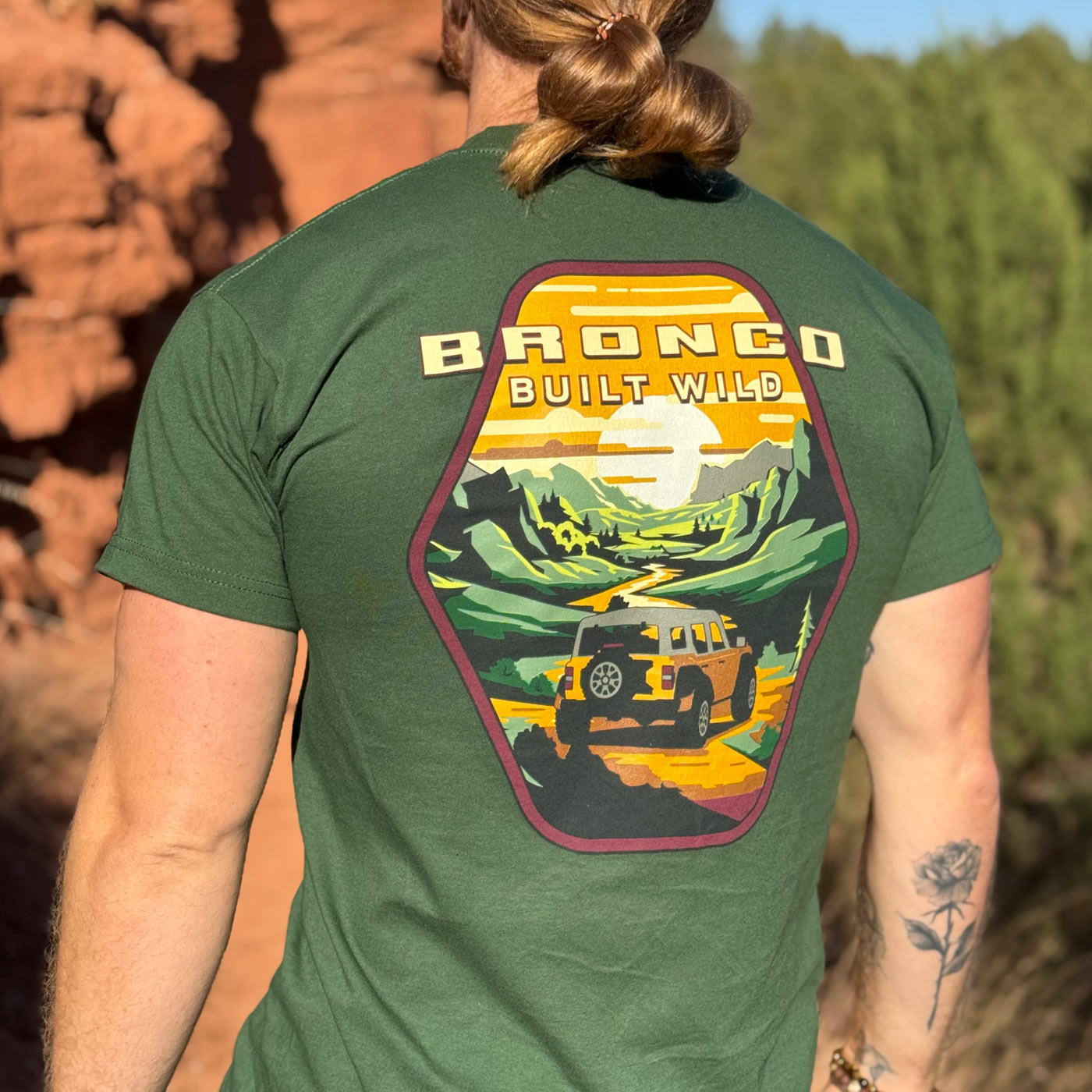 Ford Bronco Built Wild Badge Green Mens Short Sleeve T-Shirt