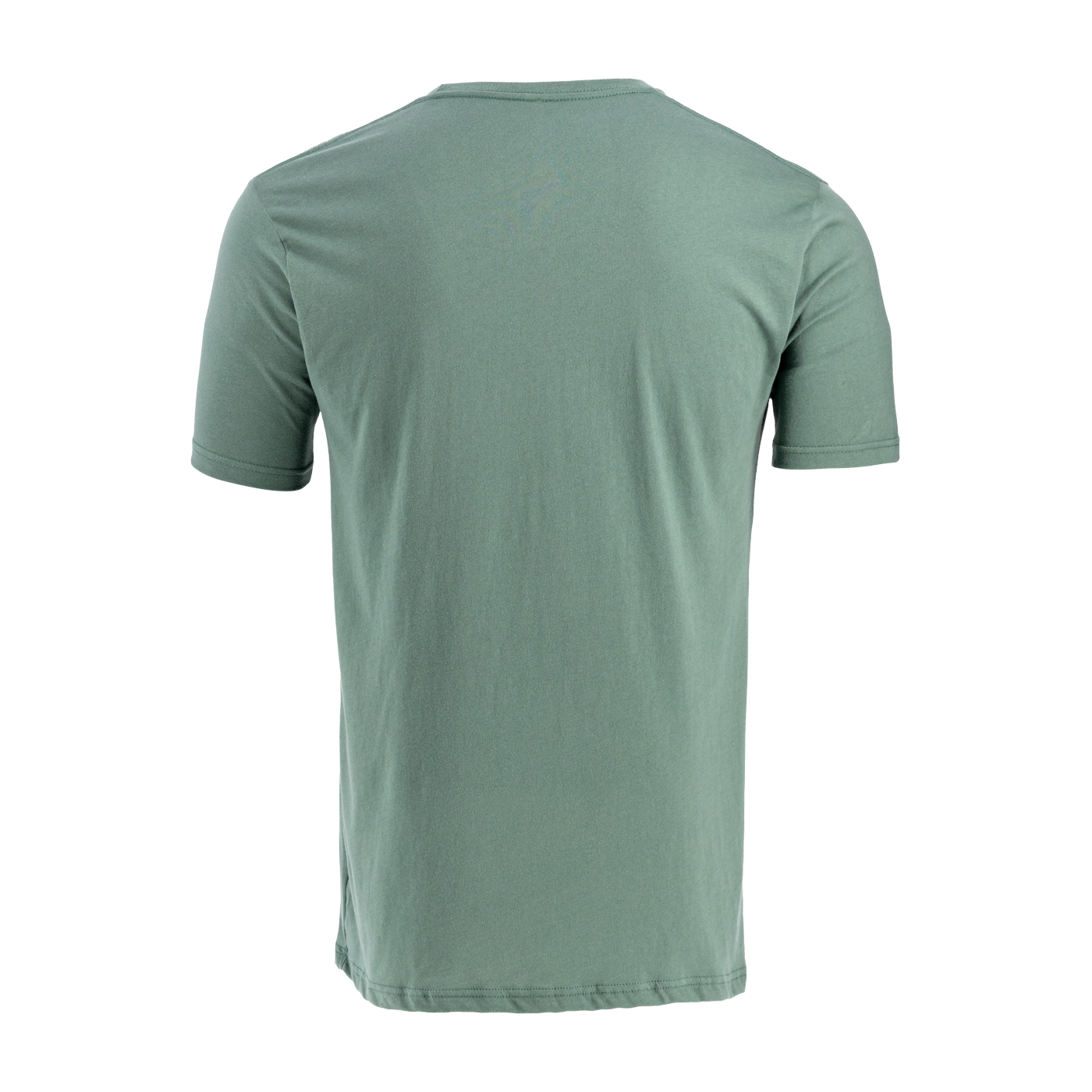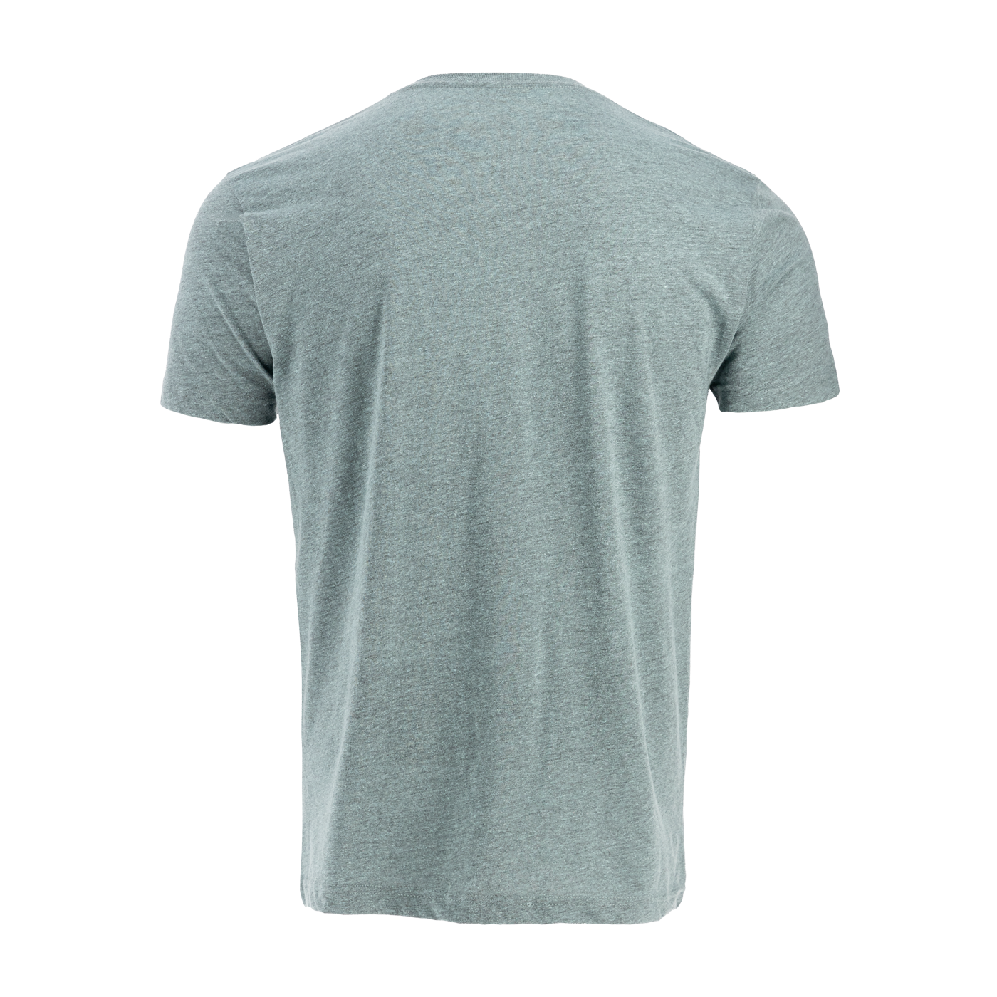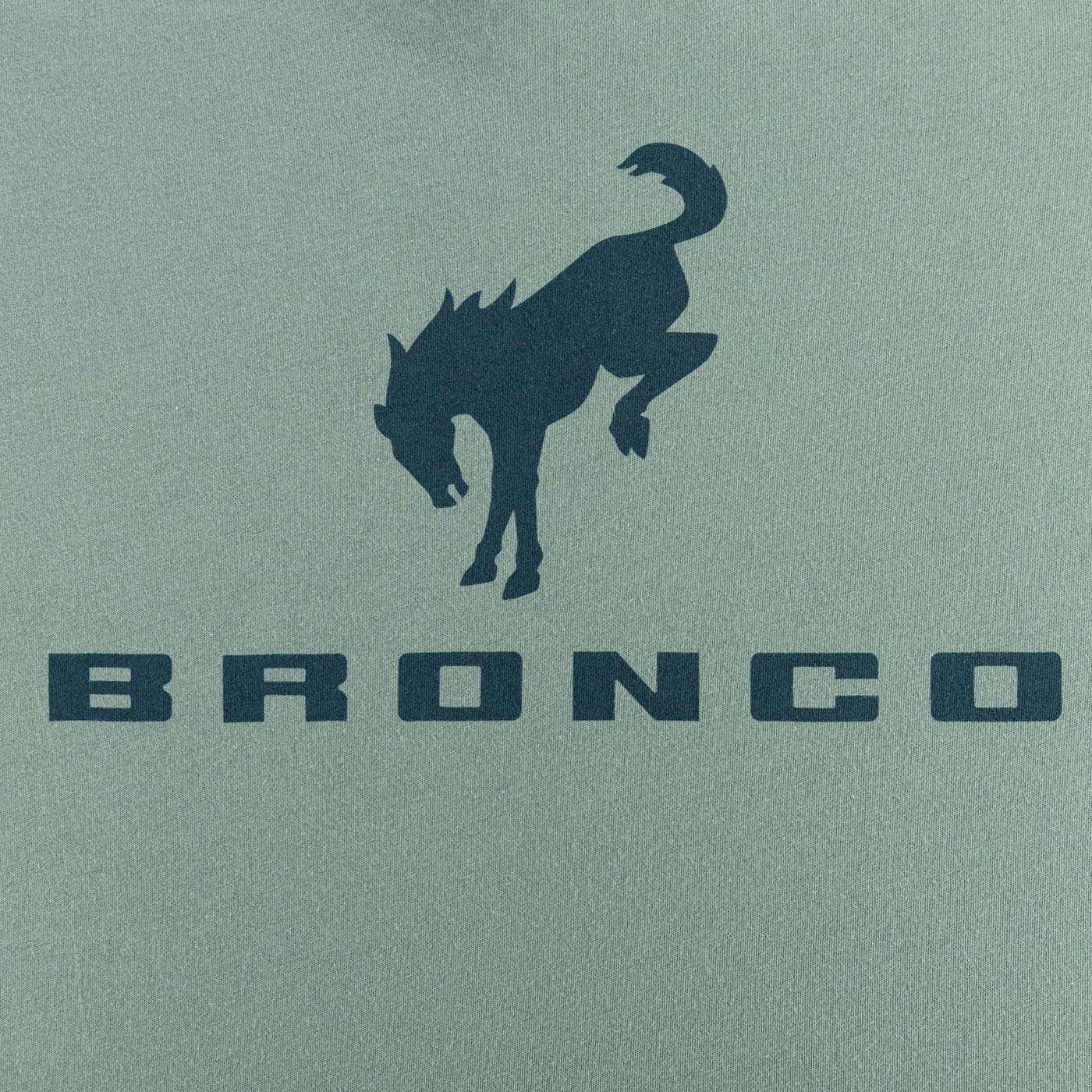 This Ford Bronco Men's Logo short-sleeved t-shirt features a classic relaxed fit and is designed for daily wear. The heathered blue tee has a printed navy Bronco logo on the front and is complete with a ribbed collar and tag-less neck label for enhanced comfort. 60% combed ring-spun cotton and 40% polyester construction.