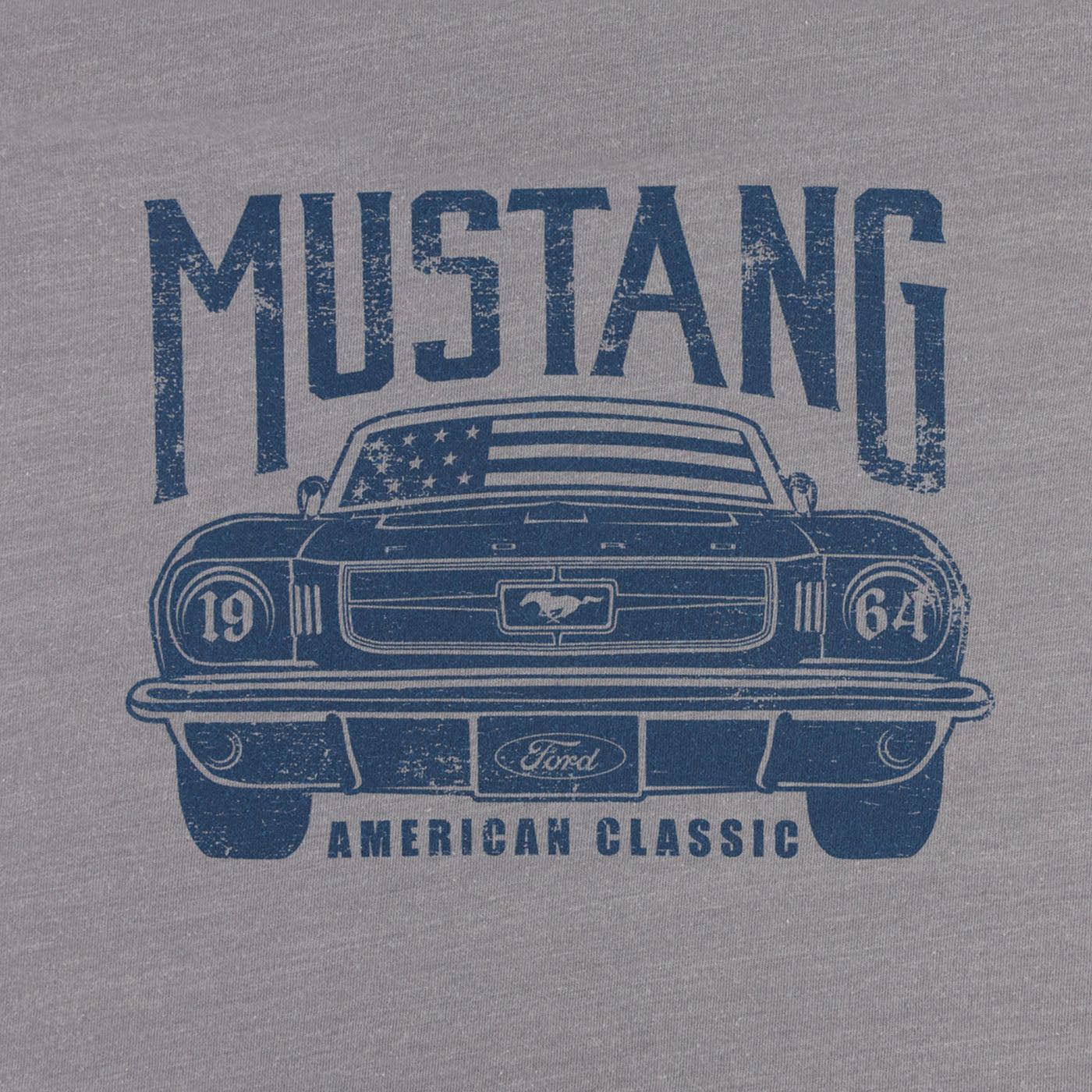 Cool looking is what people will say when they see you in the Ford Mustang American Classic Women’s T-Shirt. The shirt’s body is a grey. On the front chest in Detroit navy is a front view of the 1964 Mustang. The sleeves have a ribbed armhole cuff for a unique flare that matches the crewneck collar. Tag-less for your comfort and a relaxed fit. All those components make this a true American classic tee.