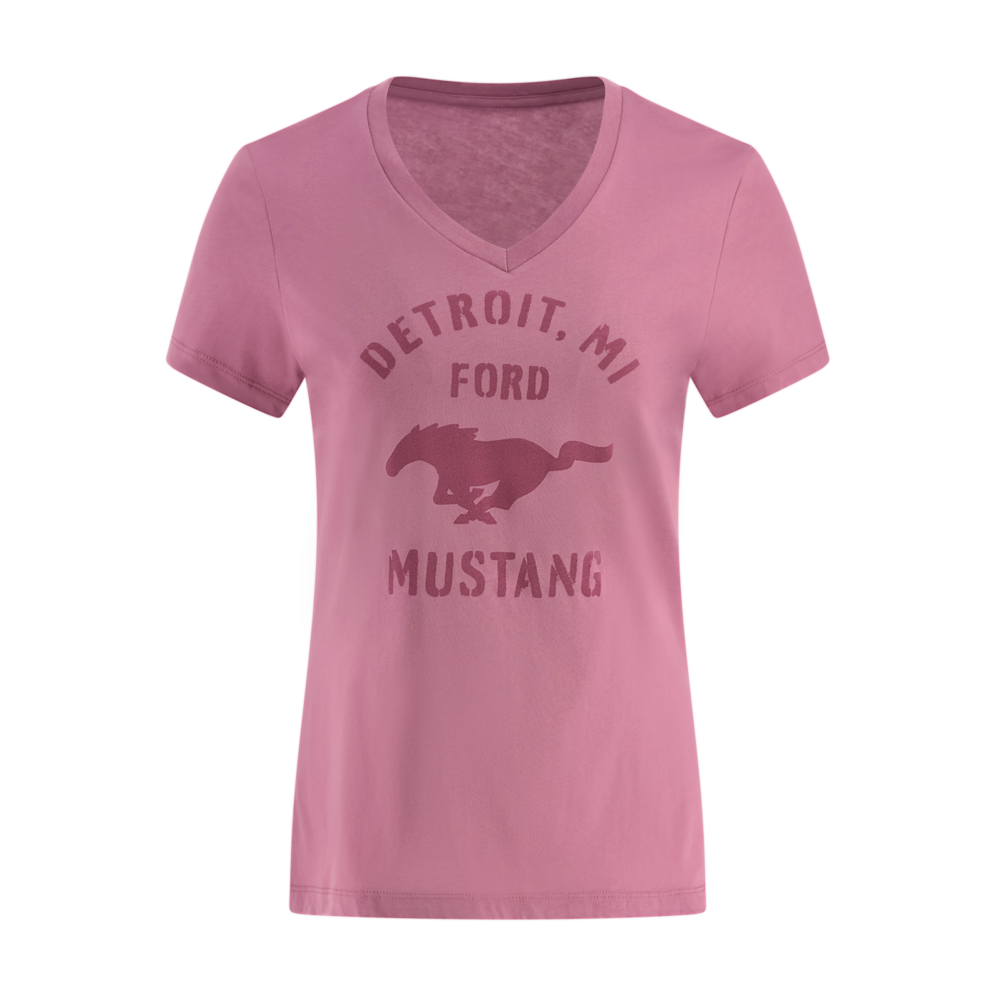 The Ford Mustang™ Women's Vintage Logo V-Neck T-Shirt Mixes Comfy Vibes with Cool Style