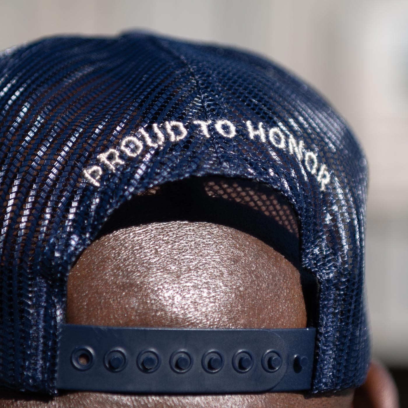 Support Our Veterans with the Ford Proud To Honor™ Mens Americana Patch Navy Mesh Back Trucker Hat