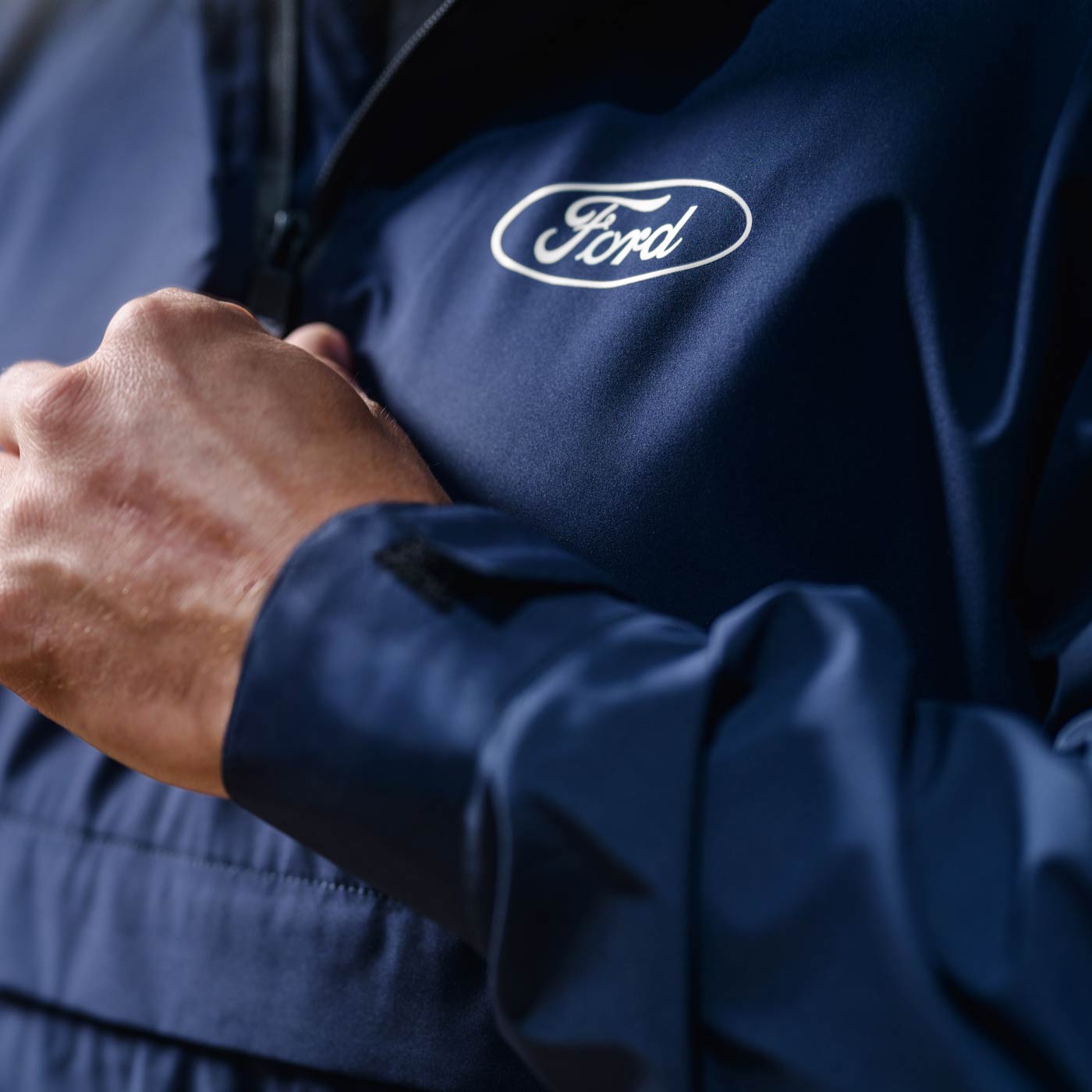 Gear up and stay dry with this hooded Ford rain jacket! This lightweight windbreaker sports a white outlined Ford oval logo on the chest. Plus, this windbreaker rain jacket has DWR finish for water resistance. The stretchy 4-way fabric with TPU lamination provides water proof and windproof qualities to seal out the rain! While the water repellent finish and rubberized zippers lock out the rain. With handy zippered pockets and a blend of polyester and spandex, this jacket is ready for whatever the weather throws at you. Just zip it up, toss it in the wash cold, skip the bleach, and hang it to dry easy!