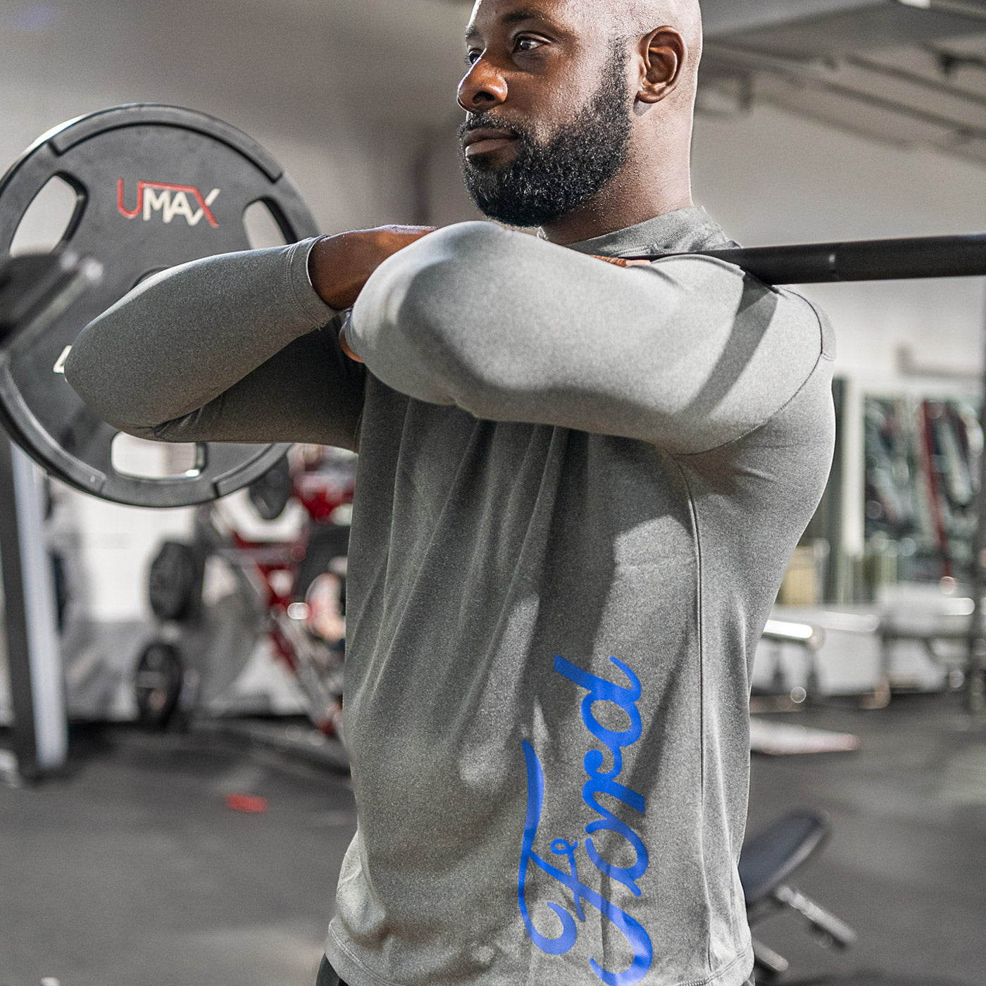 The Ford™ Men's Gray Long Sleeve Performance Shirt is Great for Your Workout