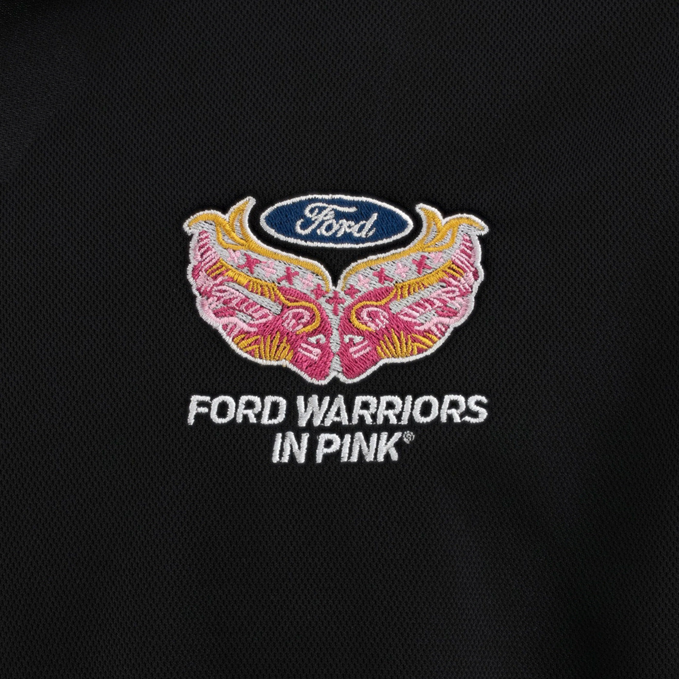 The Warriors in Pink Men's Polos feature a performance fabric and a Ford oval logo and Warriors In Pink graphic printed on the left chest. Classic relaxed fit polo short sleeve for everyday wear. Available in black or pink.